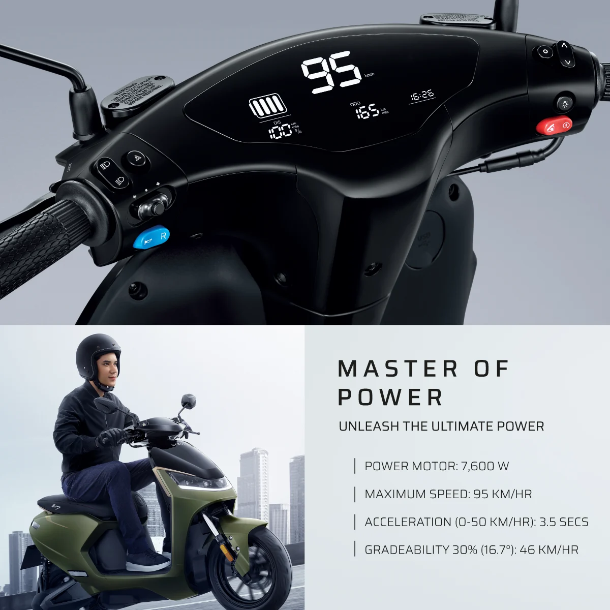 Stability and style, the center stand provides a sturdy base for the vehicle, and the footrests fold neatly into the vehicle's frame, seamlessly blend functionality and aesthetics.